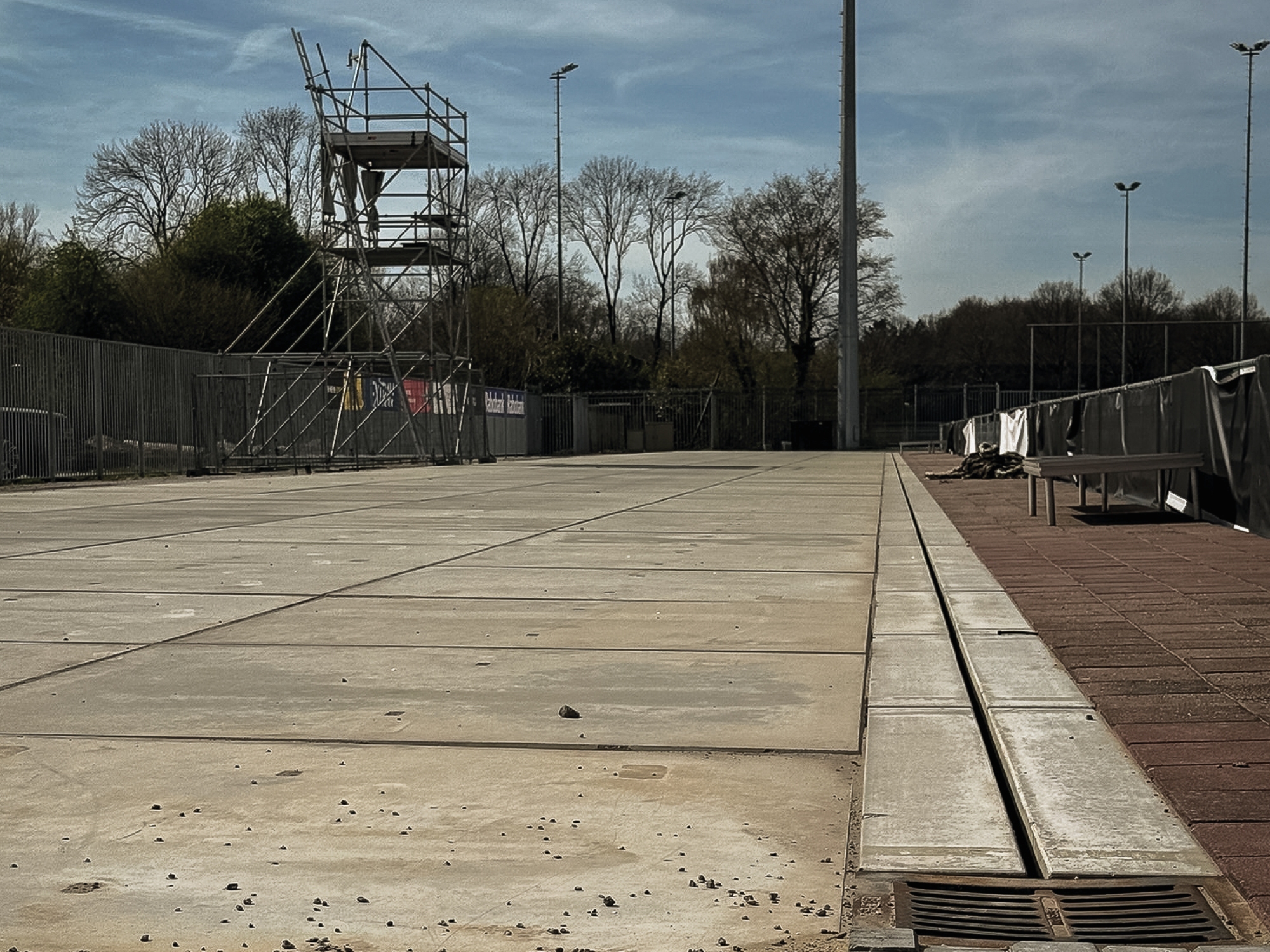 De werkzaamheden van C.A. de Groot maken deel uit van de eerste fase van deze ontwikkeling. In deze fase zijn de tribunes aan de oost-, zuid- en westzijde gesloopt en is een tijdelijke verharding aangebracht ten behoeve van tijdelijke tribunes.